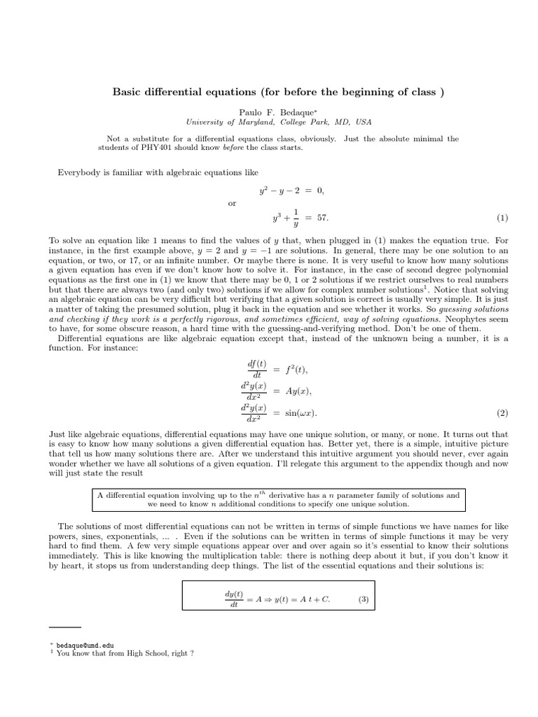 hard to find them. A few very simple equations appear over and over again so its essential to know their solutions
