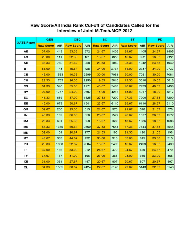 Raw Score/All India Rank Cut-off of Candidates Called for the
