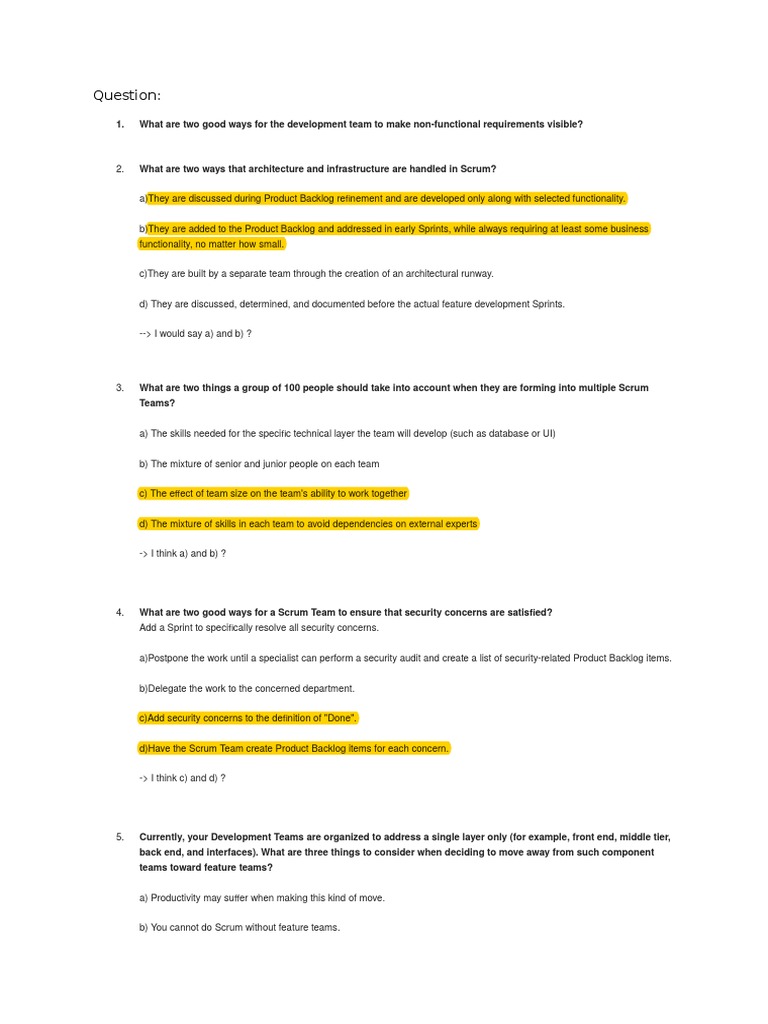 -> b) and d) because of self-organizing teams?
