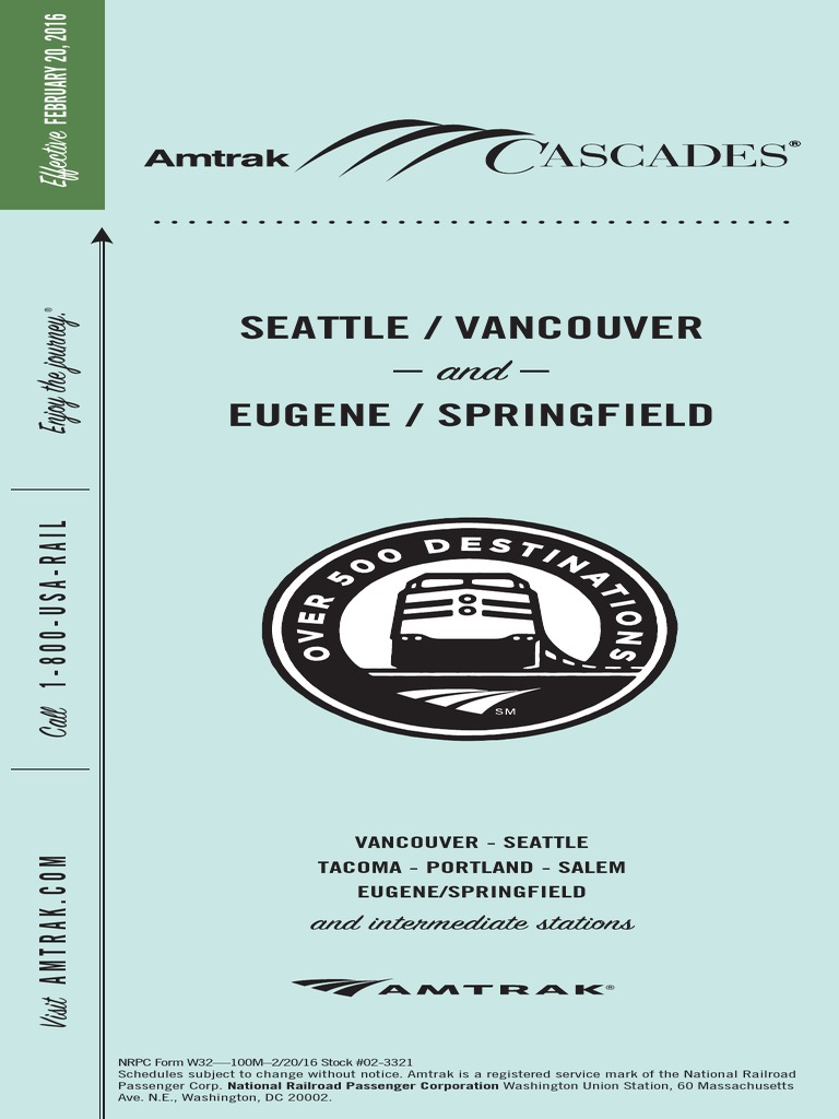 NRPC Form W32––100M–2/20/16 Stock #02-3321Schedules subject to change without notice. Amtrak is a registered service mark of the National Railroad Passenger Corp.
