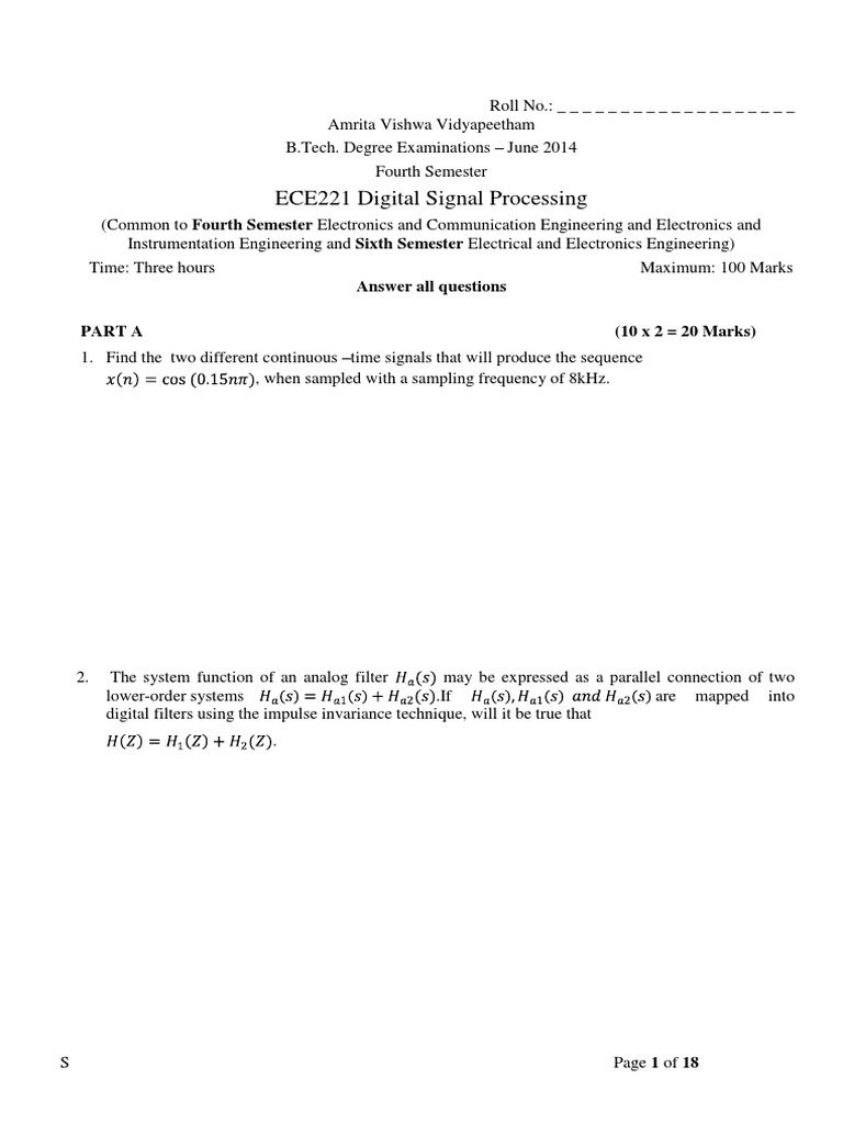 14. The spectrum of a transient signal of 5ms is to be determined using DFT. To remove aliasing, it is