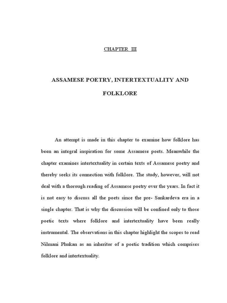 chapter examines intertextuality in certain texts of Assamese poetry and