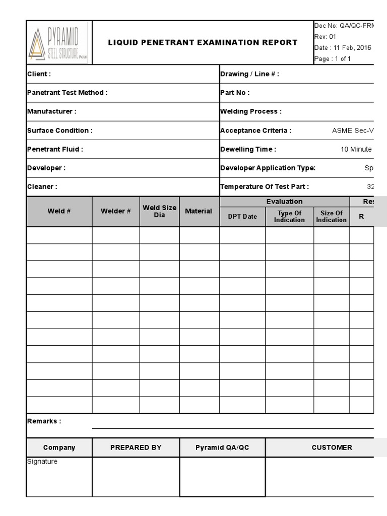 LIQUID PENETRANT EXAMINATION REPORT