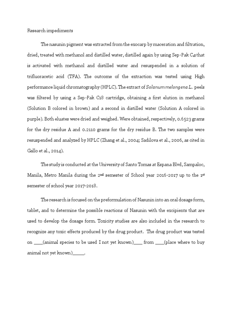 The research is focused on the preformulation of Nasunin into an oral dosage form,
