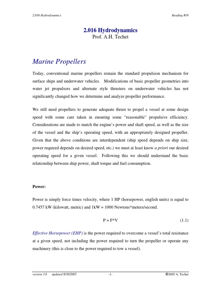 propeller in uniform flow this ideal efficiency can be computed given the advance