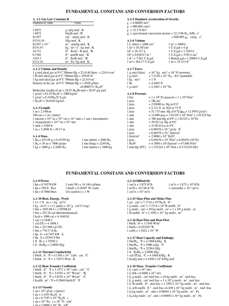 8314.34 kg . m2 / s2 . kg mol . K 1 in3 = 16.387cm3 1 U.S.gal = 4 qt