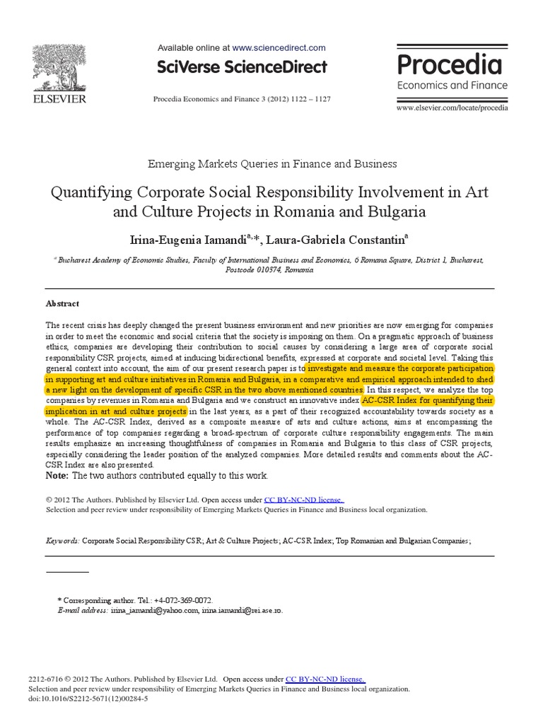 Keywords: Corporate Social Responsibility CSR; Art & Culture Projects; AC-CSR Index; Top Romanian and Bulgarian Companies;