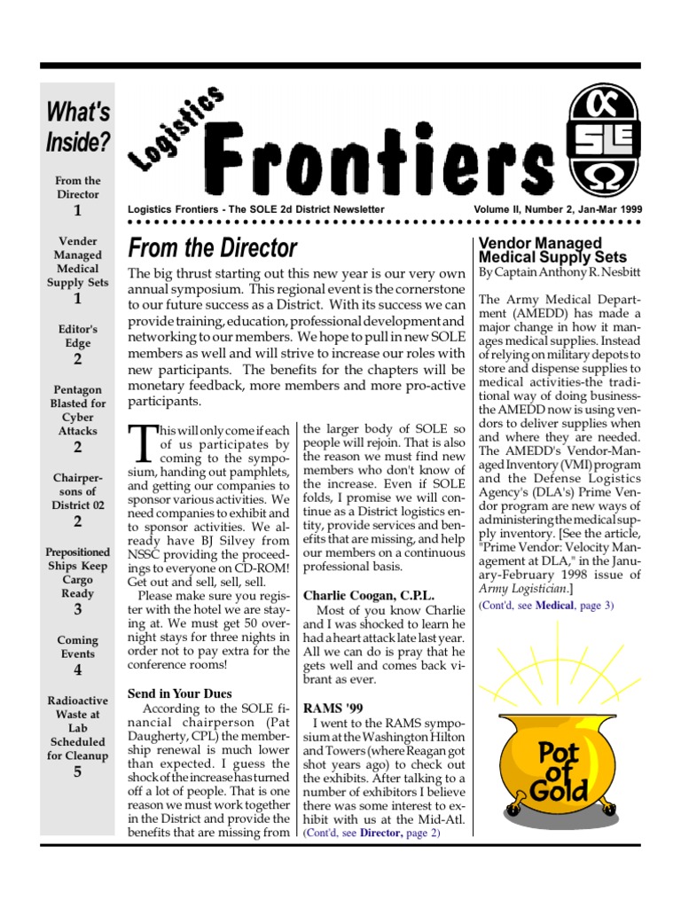 1 Logistics Frontiers - The SOLE 2d District Newsletter Volume II, Number 2, Jan-Mar 1999