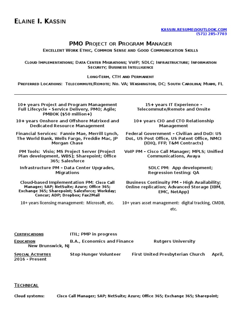 10+ years Project and Program Management 15+ years IT Experience