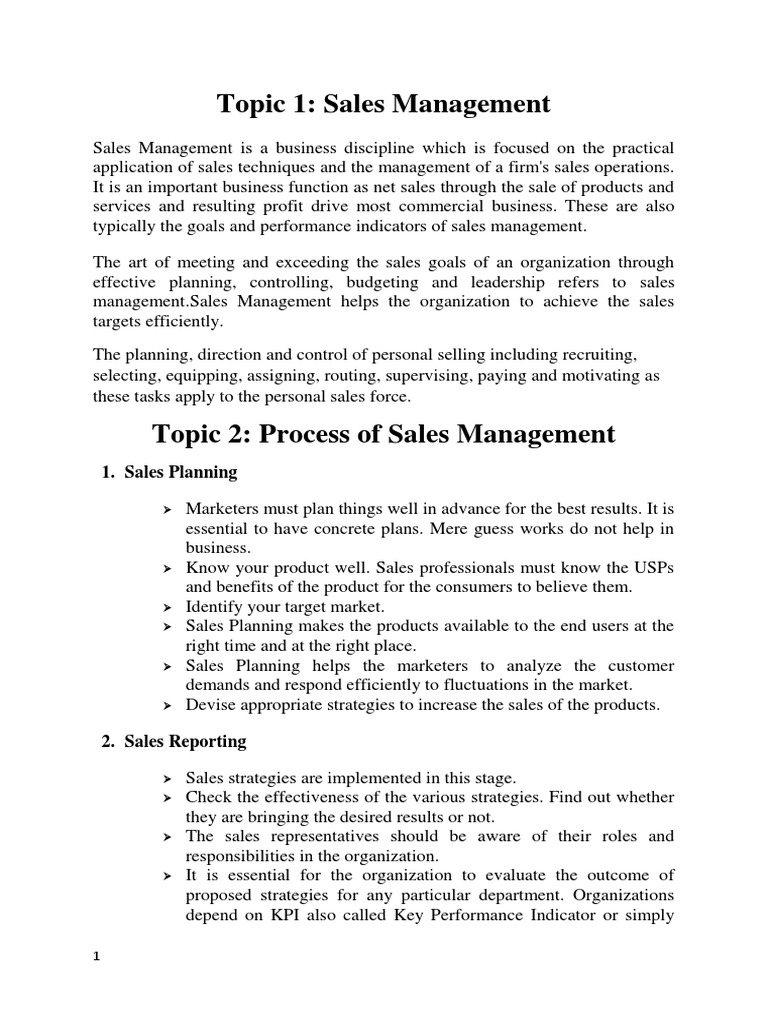 Sales Management Strategies and Processes