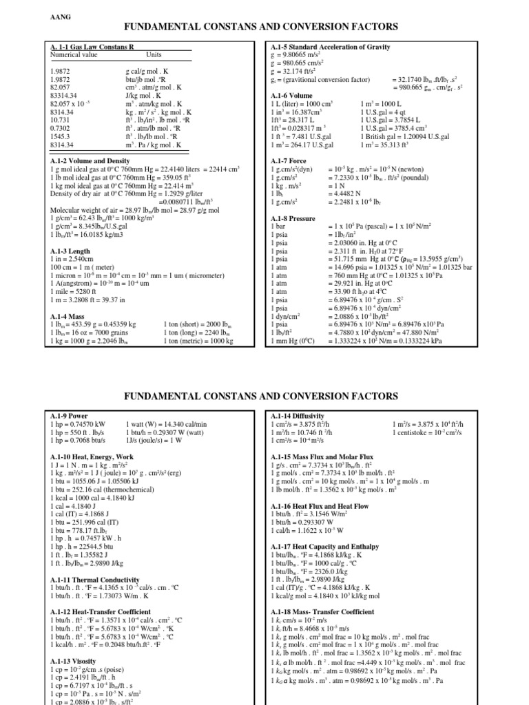 8314.34 kg . m2 / s2 . kg mol . K 1 in3 = 16.387cm3 1 U.S.gal = 4 qt
