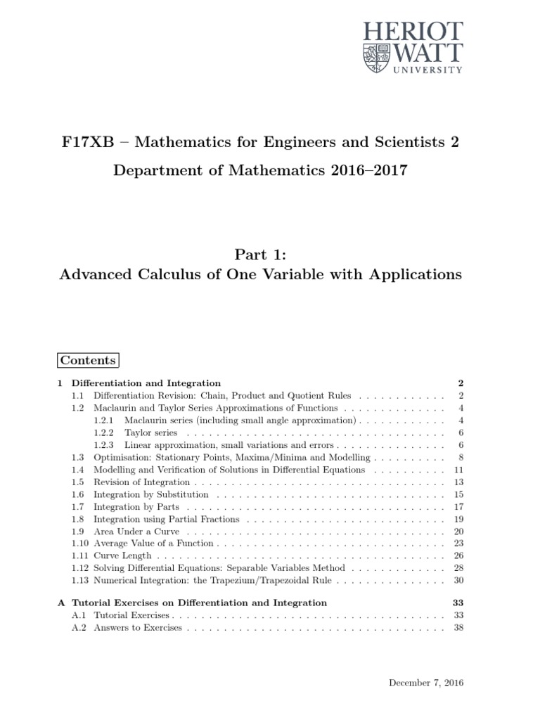1.1 Differentiation Revision: Chain, Product and Quotient Rules . . . . . . . . . . . . 2