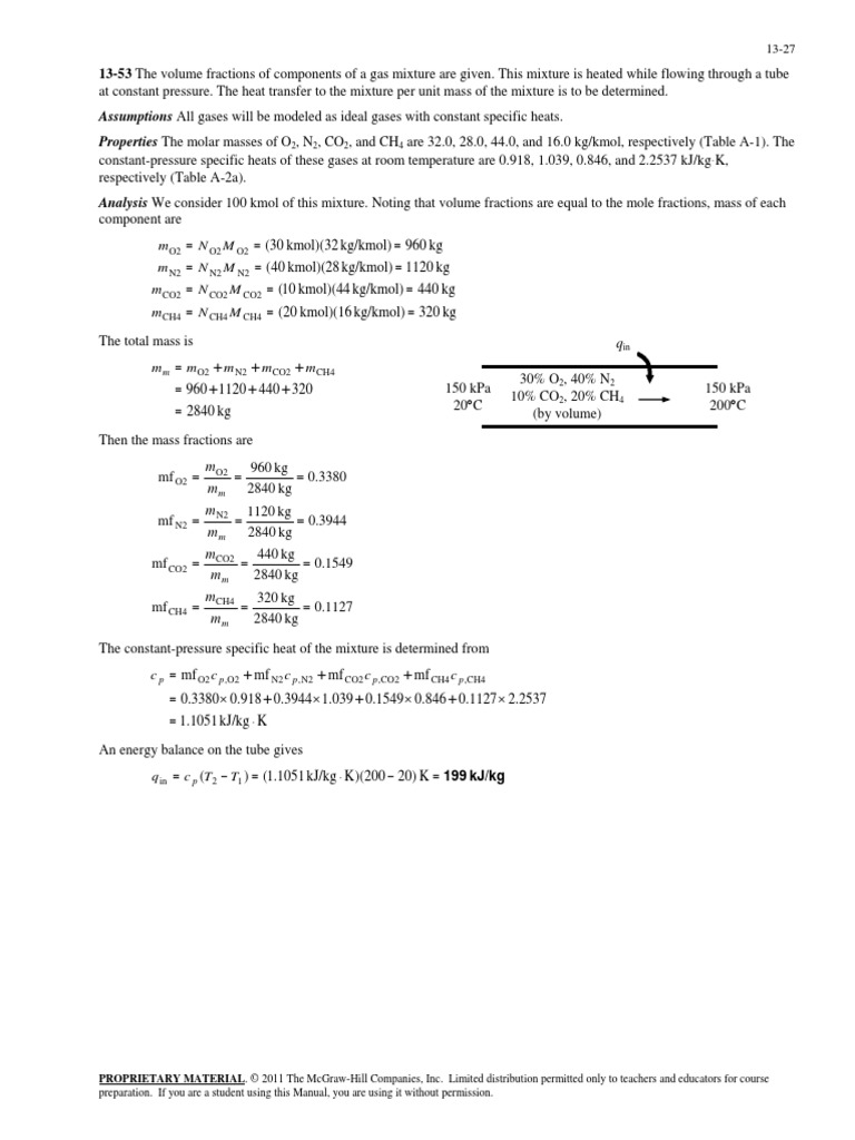 13-53 The volume fractions of components of a gas mixture are given. This mixture is heated while flowing through a tube