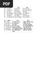 DAYS BREAKFAST SCHOOL LUNCH DINNER FRUITS