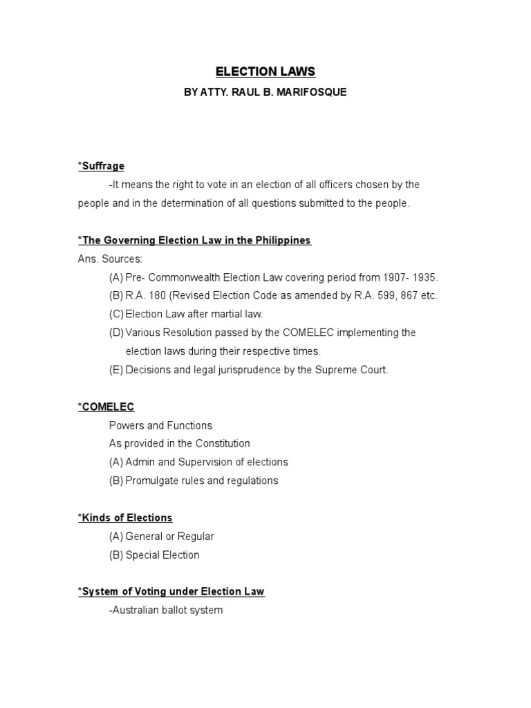 (A) Pre- Commonwealth Election Law covering period from 1907- 1935.
