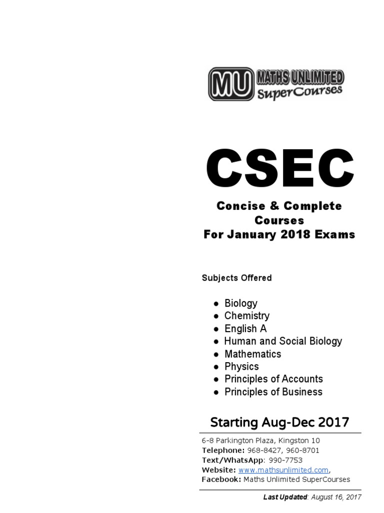 CSEC Complete Courses for January 2018