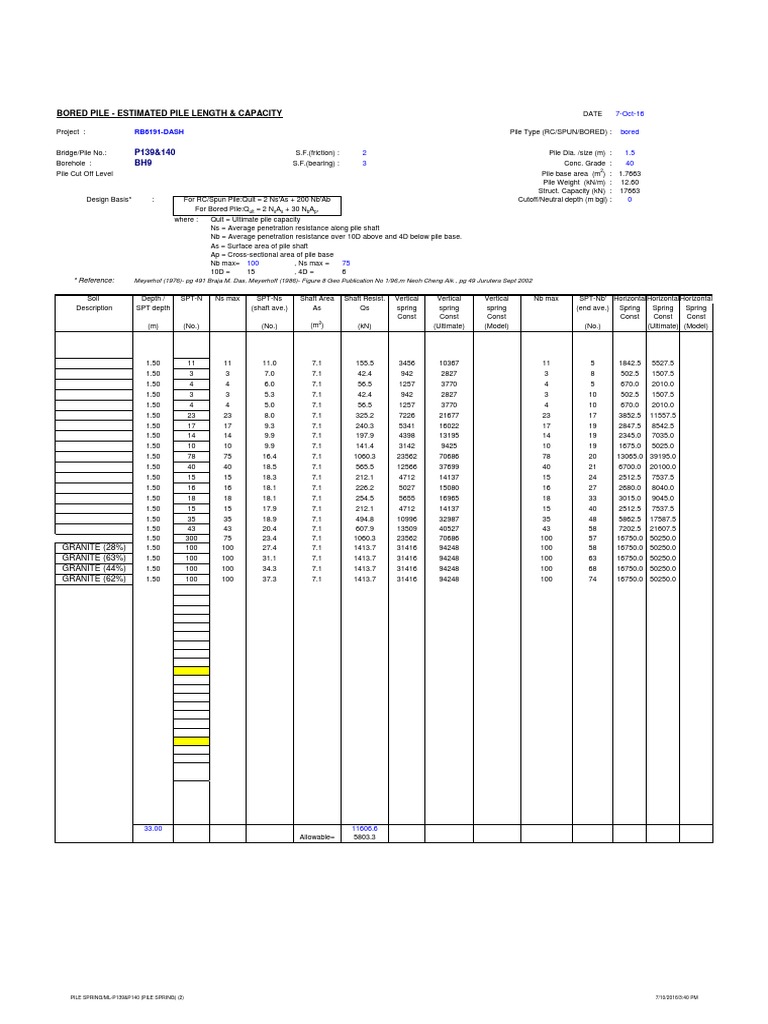 BORED PILE - ESTIMATED PILE LENGTH & CAPACITY DATE 7-Oct-16