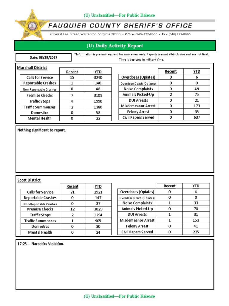 Calls for Service 17 3516 Overdoses (Opiates) 0 1