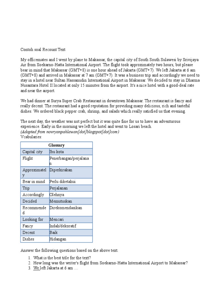 Contoh soal Recount Text