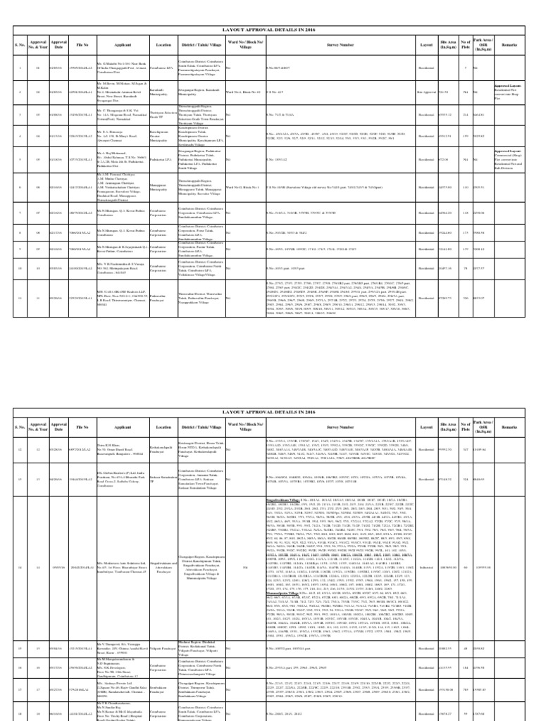 15 15 05/04/16 13215/2013/LA1 Kavundar, 2/N, Chinna Aandal Kovil Villpatti Panchayat Nil S.No:-1007/2 part, 1007/4A part Residential 20082.55 48 2050.82