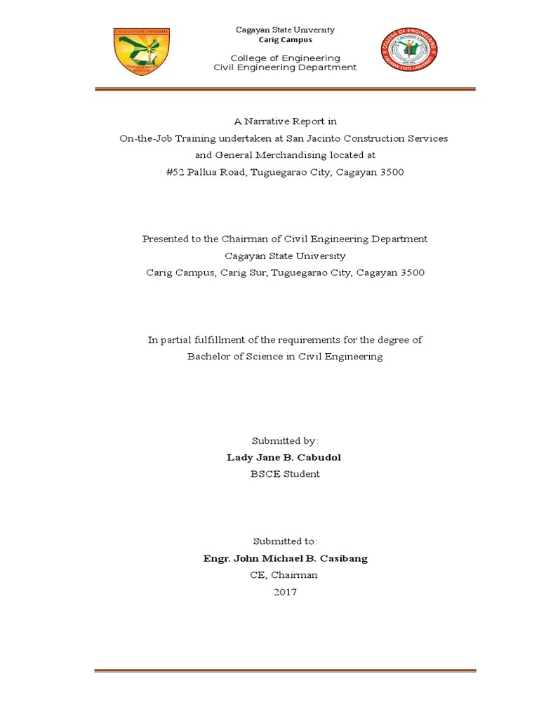 documentation of my OJT. Also, I asked the laborers some materials for the