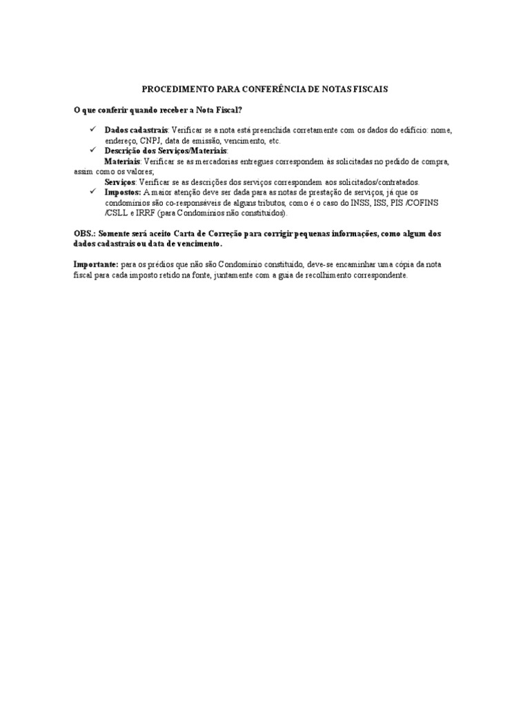 PROCEDIMENTO PARA CONFERNCIA DE NOTAS FISCAIS