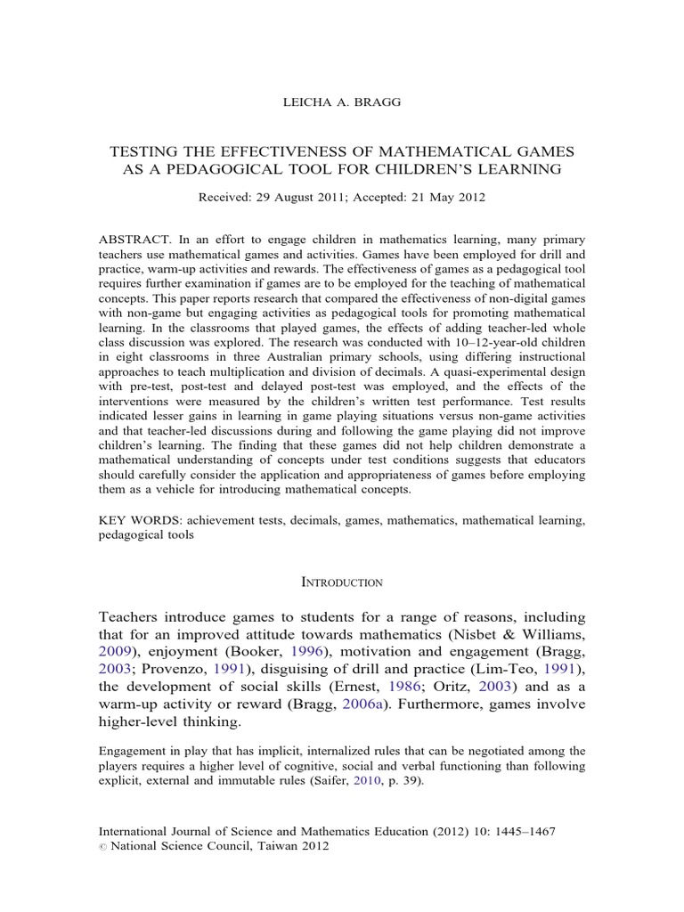 TESTING THE EFFECTIVENESS OF MATHEMATICAL GAMES 1447