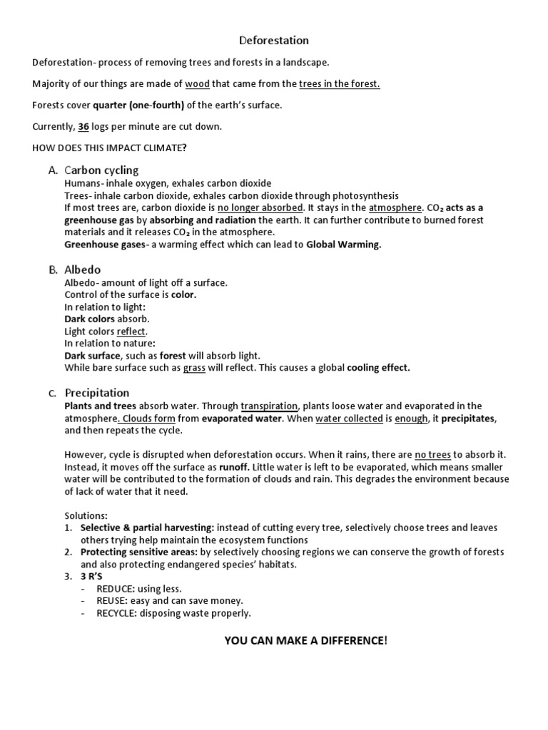 However, cycle is disrupted when deforestation occurs. When it rains, there are no trees to absorb it.