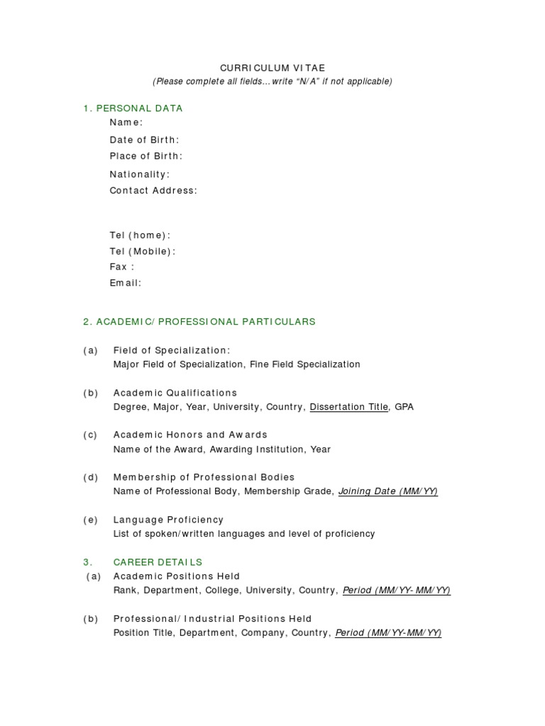 Position Title, Department, College, University, Country, Period (MM/YY-