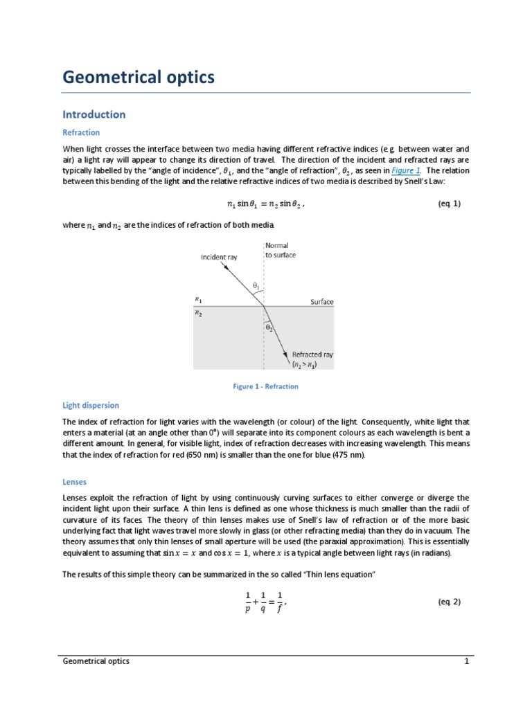 typically labelled by the angle of incidence, 1 , and the angle of refraction, 2 , as seen in Figure 1. The relation