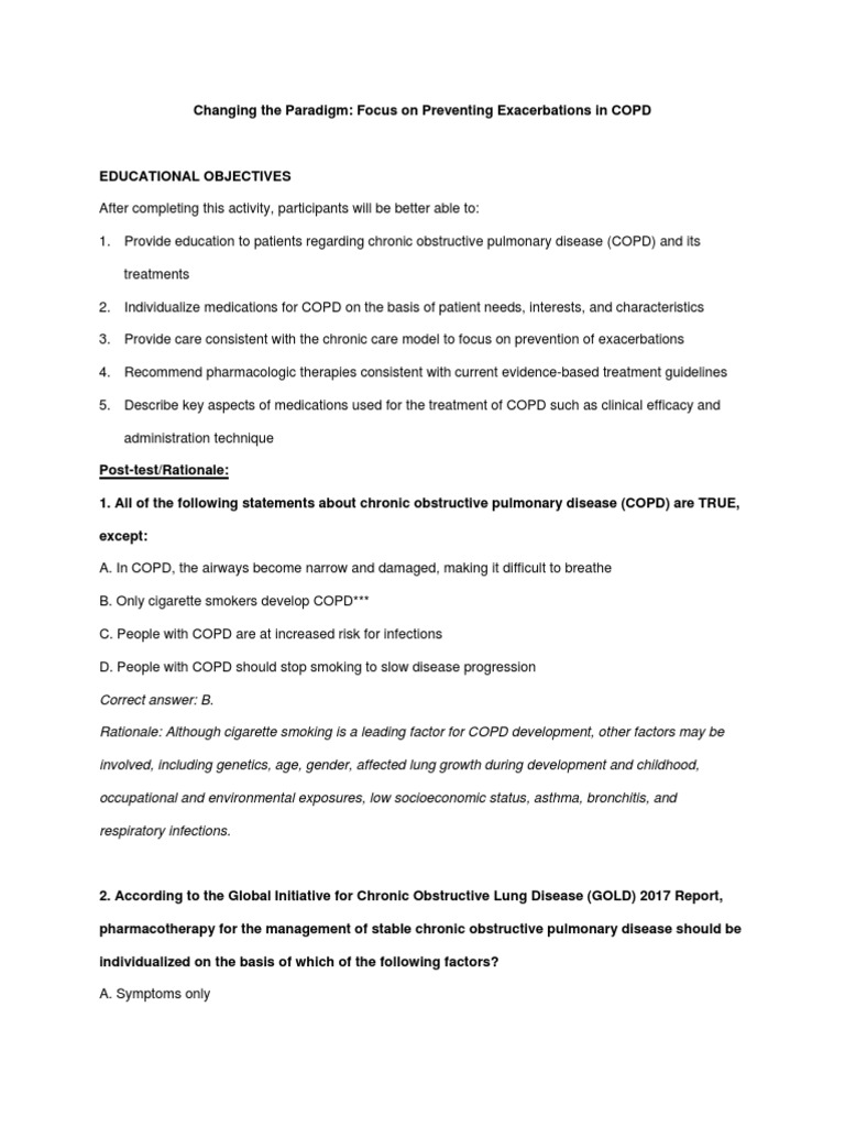 Rationale: The 2017 Global Initiative for Chronic Obstructive Lung Disease Report emphasizes tailoring