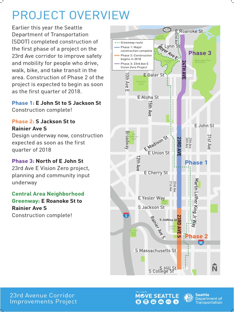 Earlier this year the Seattle Department of Transportation (SDOT) completed construction of the first phase of a project on the 23rd Ave corridor to improve safety and mobility for people who drive, walk, bike, and take transit in the area. Construction of Phase 2 of the project is expected to begin as soon as the first quarter of 2018.