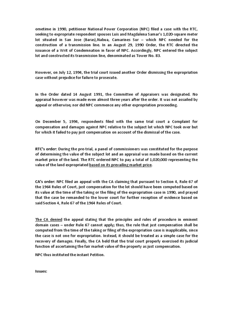 ometime in 1990, petitioner National Power Corporation (NPC) filed a case with the RTC,