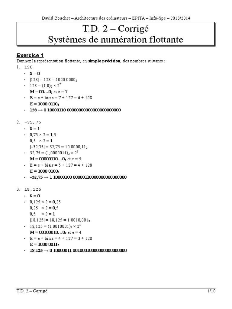 E = e + biais = 5 + 127 = 4 + 128