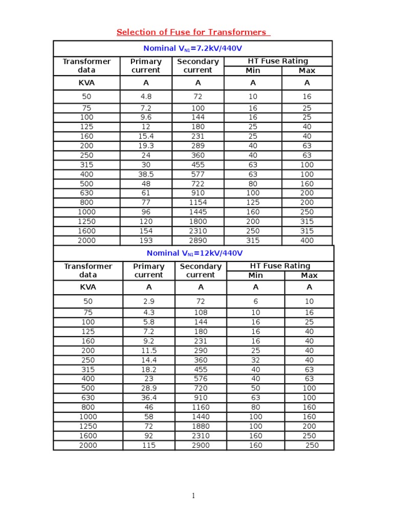 Transformer Primary Secondary HT Fuse Rating