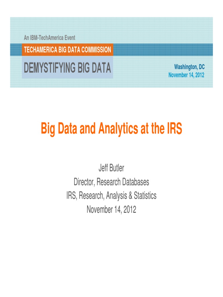 In 2005, it took over 4 months to load a full year of tax return data vs. 10 hours today