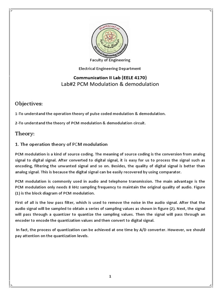 1-To understand the operation theory of pulse coded modulation & demodulation.