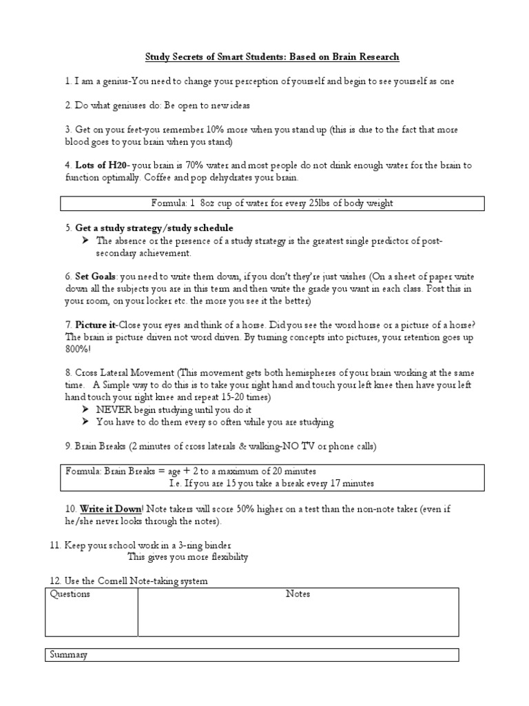 Study Secrets of Smart Students: Based on Brain Research