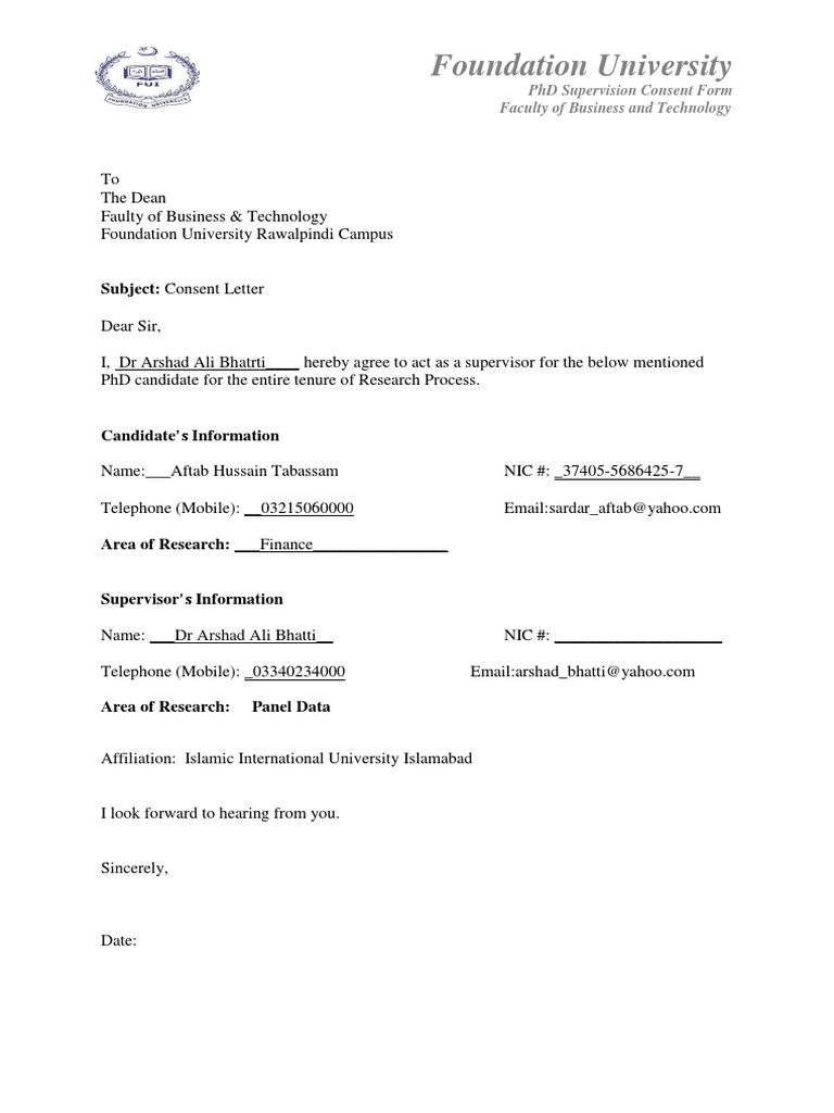 PhD Supervision Consent Form