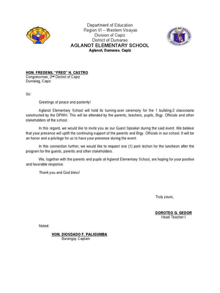 that your presence will uplift the continuing support of the parents and Brgy. Officials in our school. It will be