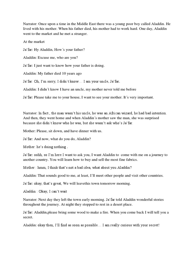 Narator: Aladdin mengatakan wh nya di yang telah terjadi, lalu ia bertanya.