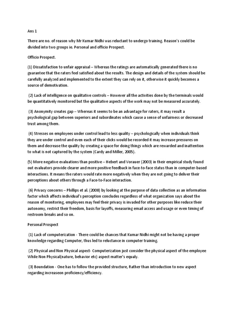 There are no. of reason why Mr Kumar Nidhi was reluctant to undergo training. Reasons could be