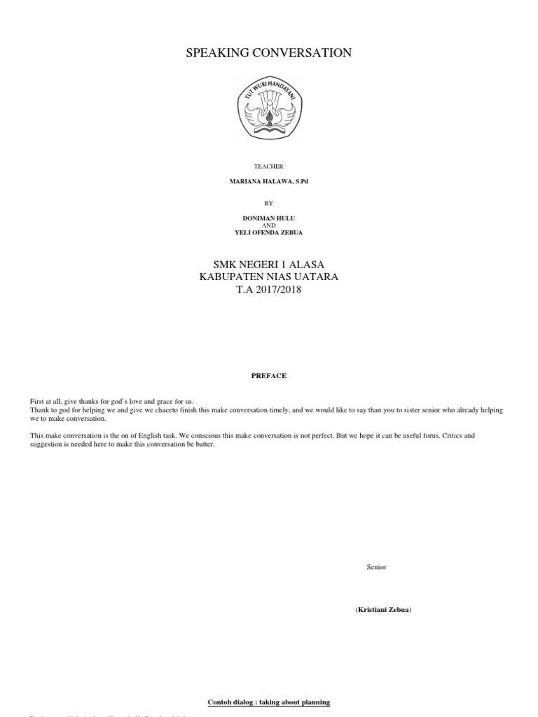 This make conversation is the on of English task. We conscious this make conversation is not perfect. But we hope it can be useful forus. Critics and