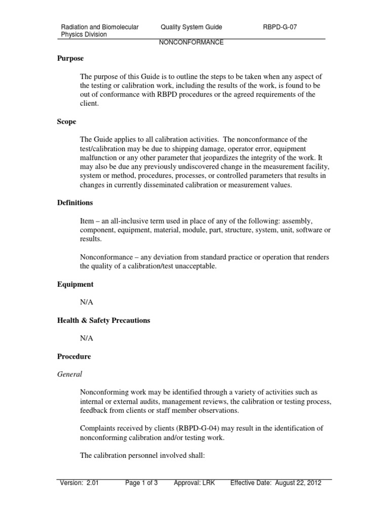 Radiation and Biomolecular Quality System Guide RBPD-G-07