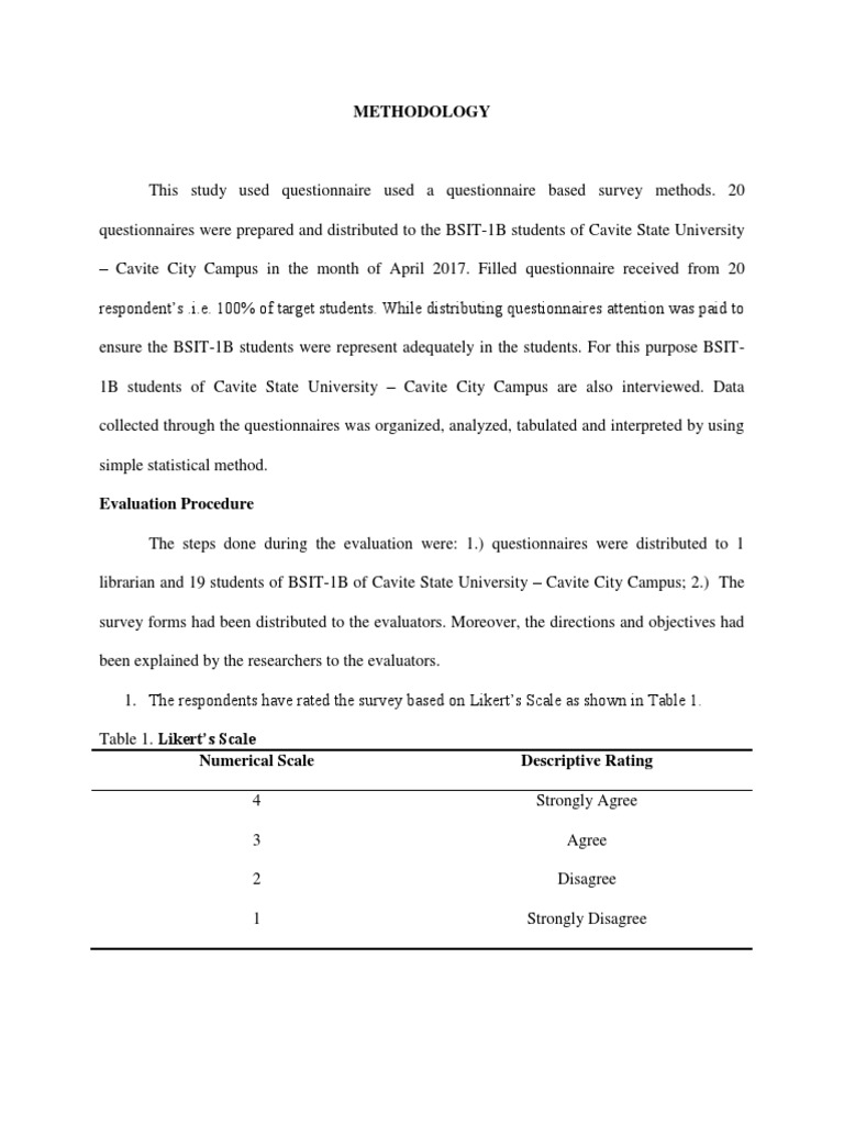 1. The respondents have rated the survey based on Likerts Scale as shown in Table 1.
