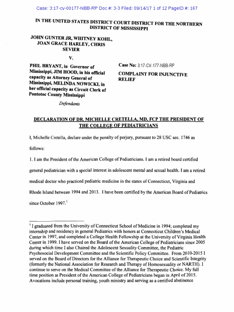 1. I am the President of the American College of Pediatricians. I am a retired board certified