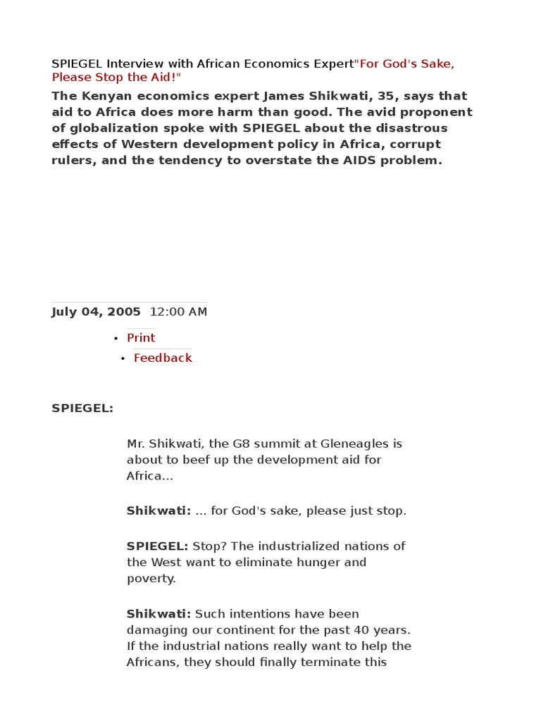 SPIEGEL Interview with African Economics Expert"For God's Sake,