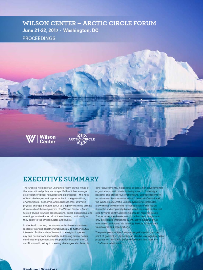 The Arctic is no longer an uncharted realm on the fringe of the international policy landscape. Rather, it has emerged as a region of global relevance and significance – the host of both challenges and opportunities in the geopolitical, environmental, economic, and social spheres. Dramatic physical changes brought about by a rapidly warming climate drive much of these dynamics. The Wilson Center - Arctic Circle Forum’s keynote presentations, panel discussions, and meetings touched upon all of these issues, particularly as they apply to the United States and Russia. In the Arctic context, the two countries have a sustained record of working together pragmatically to further mutual interests. As the scale of issues in the region impedes any one nation from adequately addressing critical needs, continued engagement and cooperation between the U.S. and Russia will be key to meeting challenges also faced by other governments, indigenous peoples, non-governmental organizations, and private industry – and to fostering a peaceful and prosperous Arctic future. Science diplomacy, as evidenced by successes within the Arctic Council and the White House Arctic Science Ministerial, promotes a low-threat environment for cooperation in the region. Scientific and empirically-based initiatives must be the first step towards jointly addressing broader regional issues. Furthermore, the development of effective strategies can only be realized through frequent, active dialogue by all interested parties and via existing, flexible international frameworks and organizations. The participants of the Forum emerged hopeful that the spirit of goodwill in the Arctic can also be leveraged to make progress on non-Arctic policy differences that mark the U.S.-Russia relationship.
