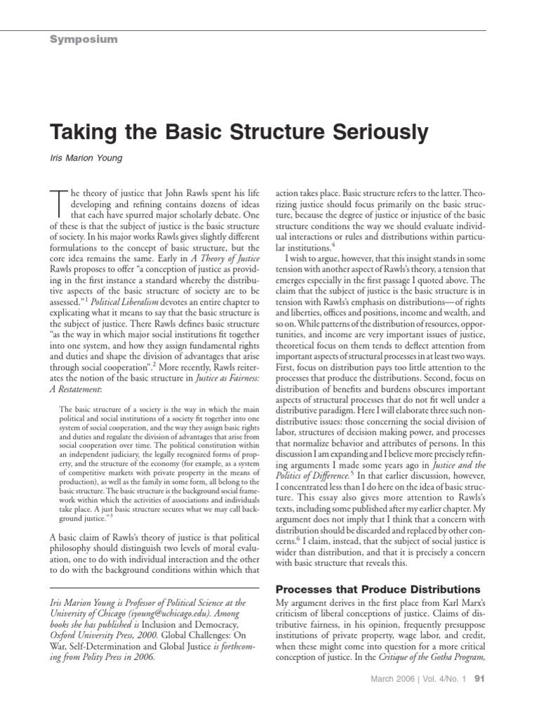 than not, when we ask about the fair distribution of goods, Taking the basic structure as the subject of justice can