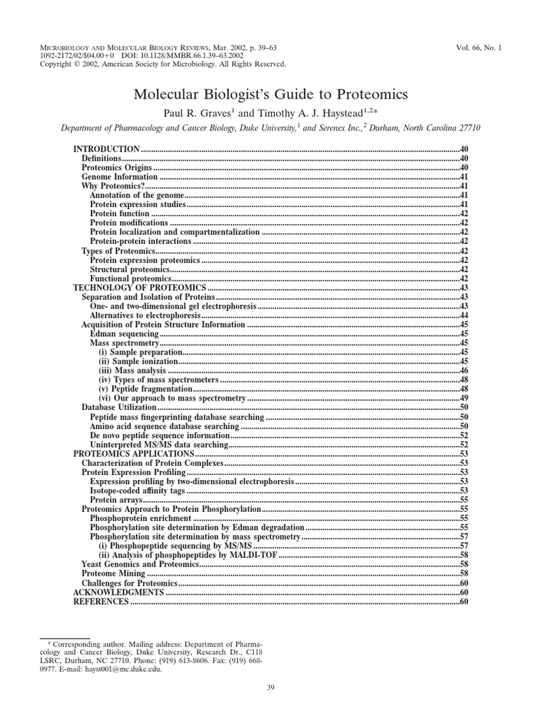 VOL. 66, 2002 MOLECULAR BIOLOGISTS GUIDE TO PROTEOMICS 63